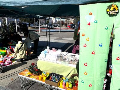 小さなクリスマスマーケットも初開催。ボランティア団体ブースや市内のお店が出店しました。