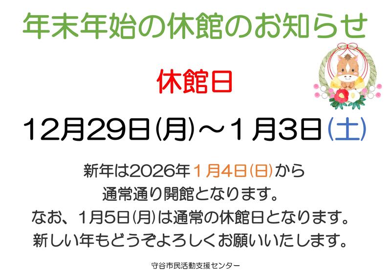 年末年始の休館のお知らせ