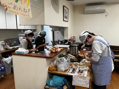 <寄付いただいた野菜などを調理>
