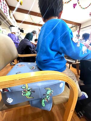 子ども用クッションとスープ保温ジャーは助成金を利用して購入。